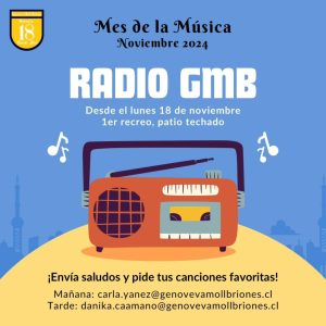 📻 Radio GMB estará en el aire desde el lunes 18 de noviembre en el primer recreo, ¡directo desde el patio techado! 📍